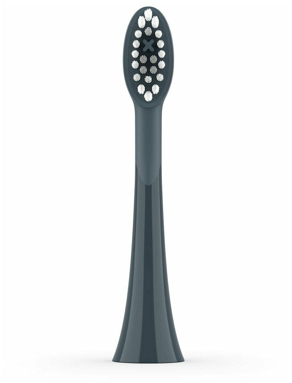 Сменные насадки для электрической зубной щетки ORDO Sonic+ с закругленными щетинками и силиконовым полирующим элементом, 2 штуки, темно-серые