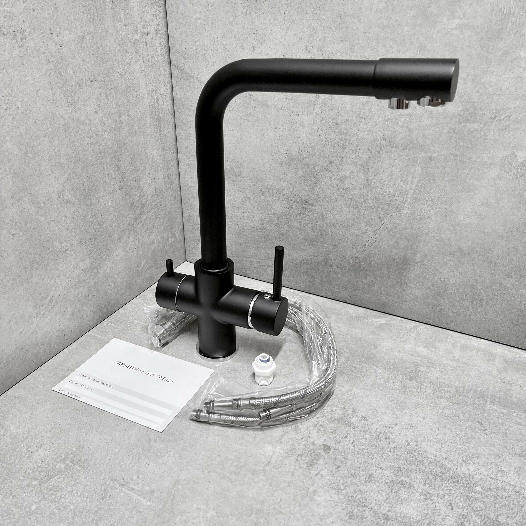 Смеситель для кухни D-lin D159315-1A с подключением фильтра питьевой воды, черный