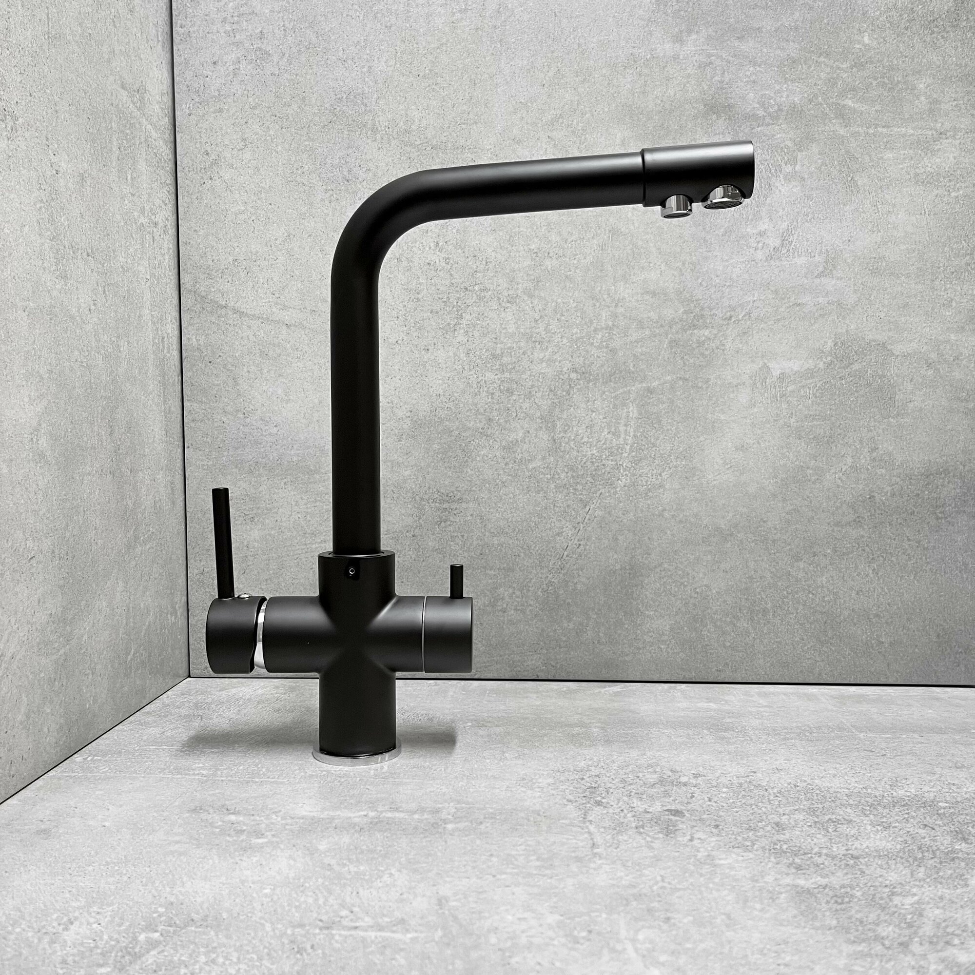 Cмеситель для кухонной мойки под фильтр с краном для питьевой воды (поворотный излив), черный
