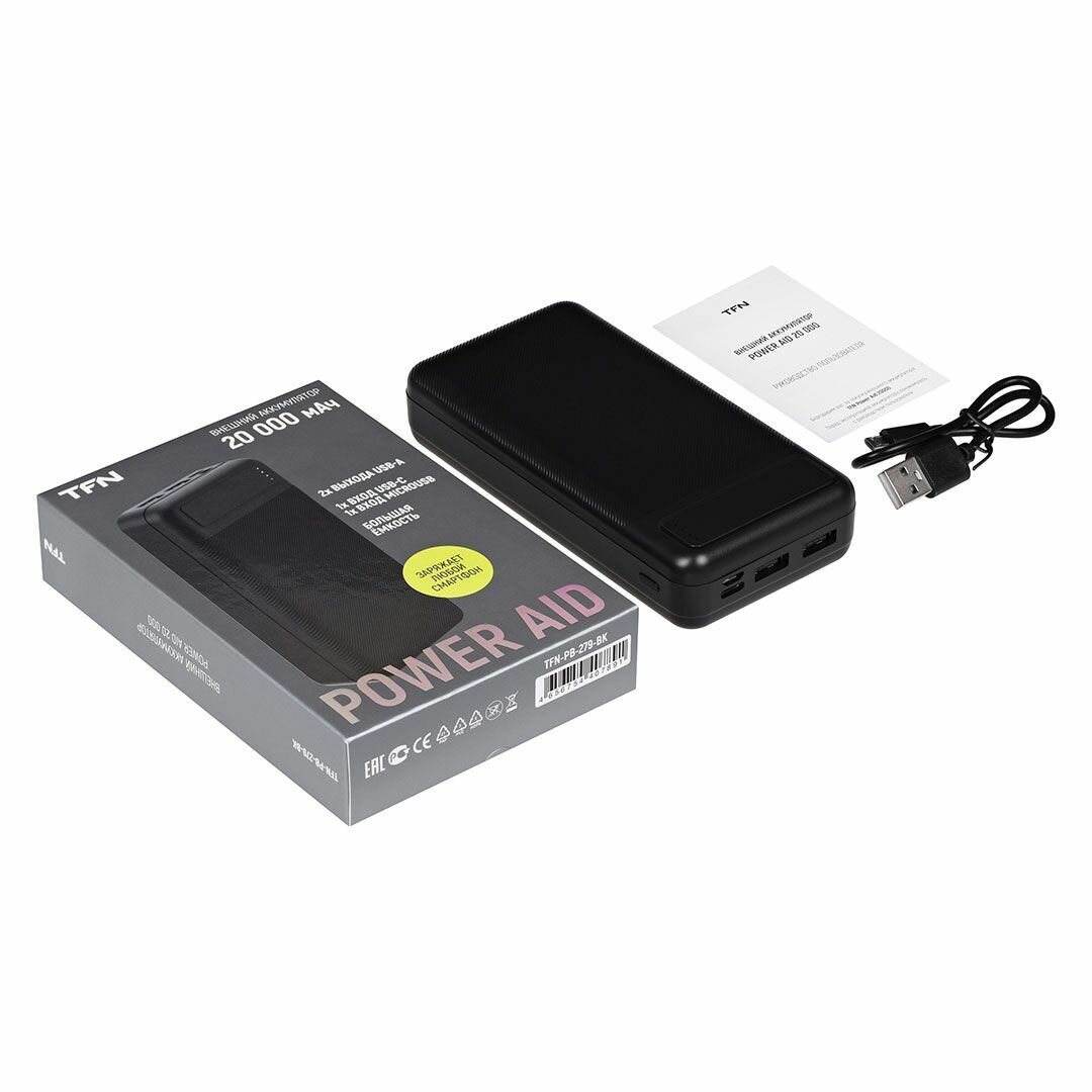 Аккумулятор внешний TFN PowerAid (TFN-PB-279-BK) 20000 мАч, 4.5 А, USB 2.0 (TFN-PB-279-BK)