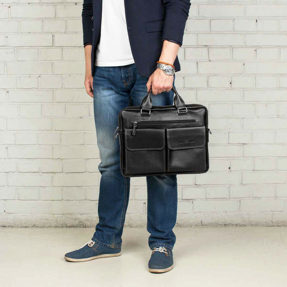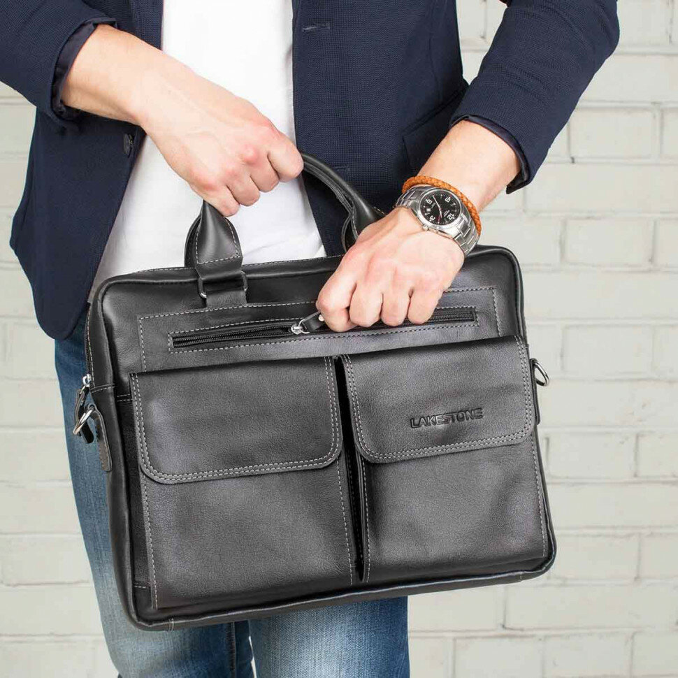 Мужская кожаная деловая сумка LAKESTONE Holford Black 926013/BL интересное: