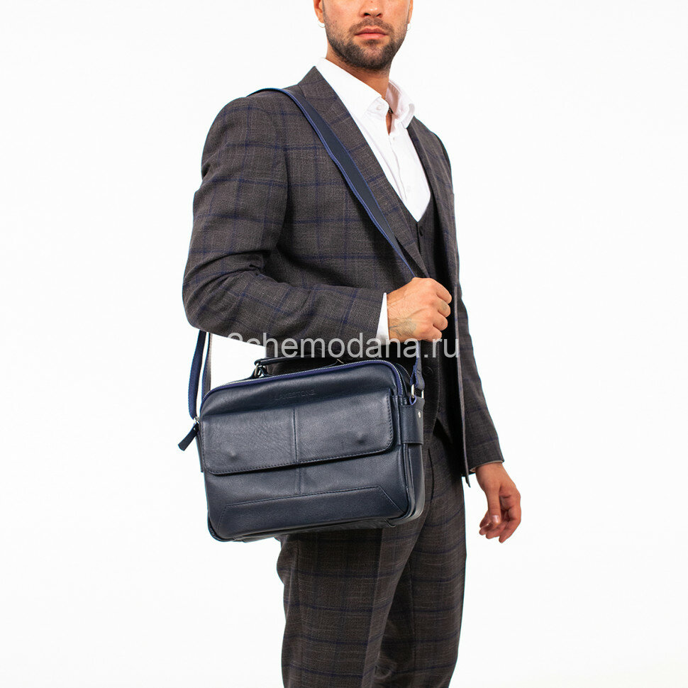 Мужская кожаная сумка мессенджер Lakestone Button Dark Blue 956019/DB интересное: