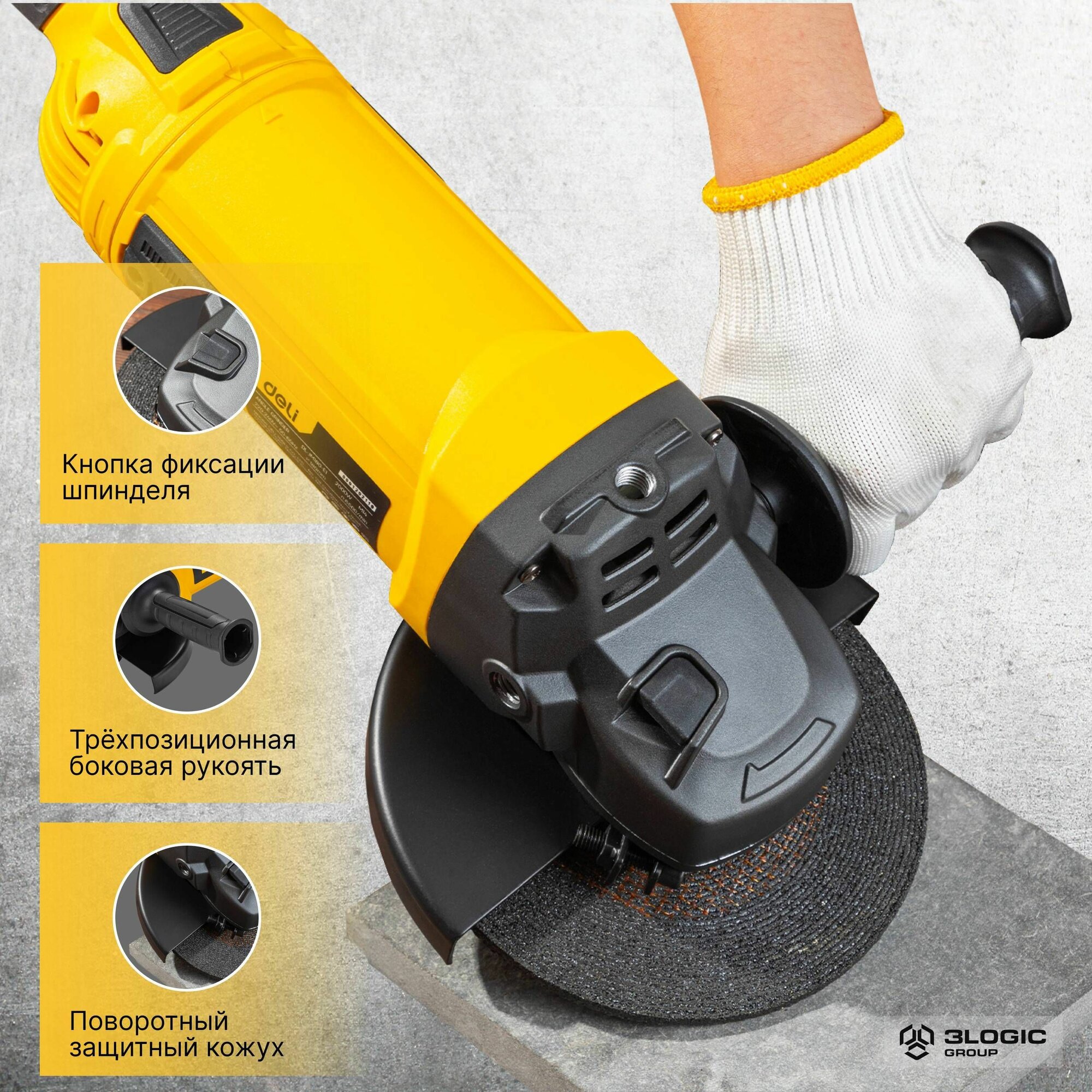 Шлифмашина угловая Deli DL-JM180-E1, 2000Вт, 180мм, 6500об/мин