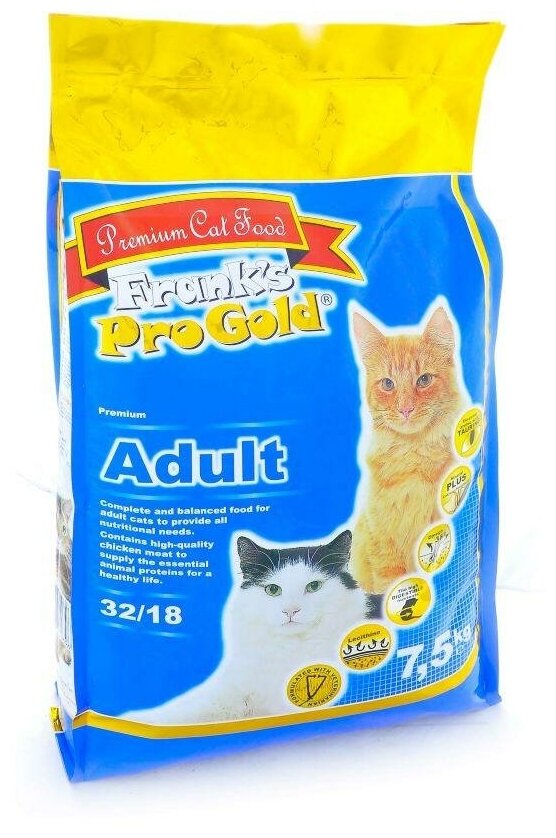 Корм Frank's ProGold для взрослых кошек: Курица (Adult 32/18), 7.5 кг