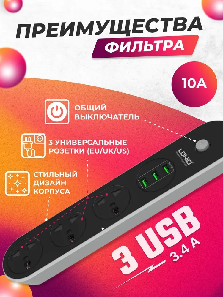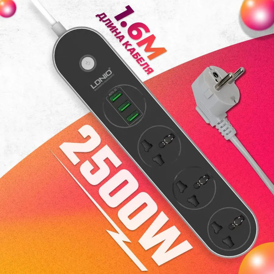 Ниже Вы можете прочитать отзывы на Сетевой фильтр LDNIO SE3301, 3 розетки, с/з серый/черный 1.6 м, ознакомится с подробными характеристиками, посмотреть интересные обзоры и фотографии на Сетевой фильтр LDNIO SE3301, 3 розетки, с/з серый/черный 1.6 м.
