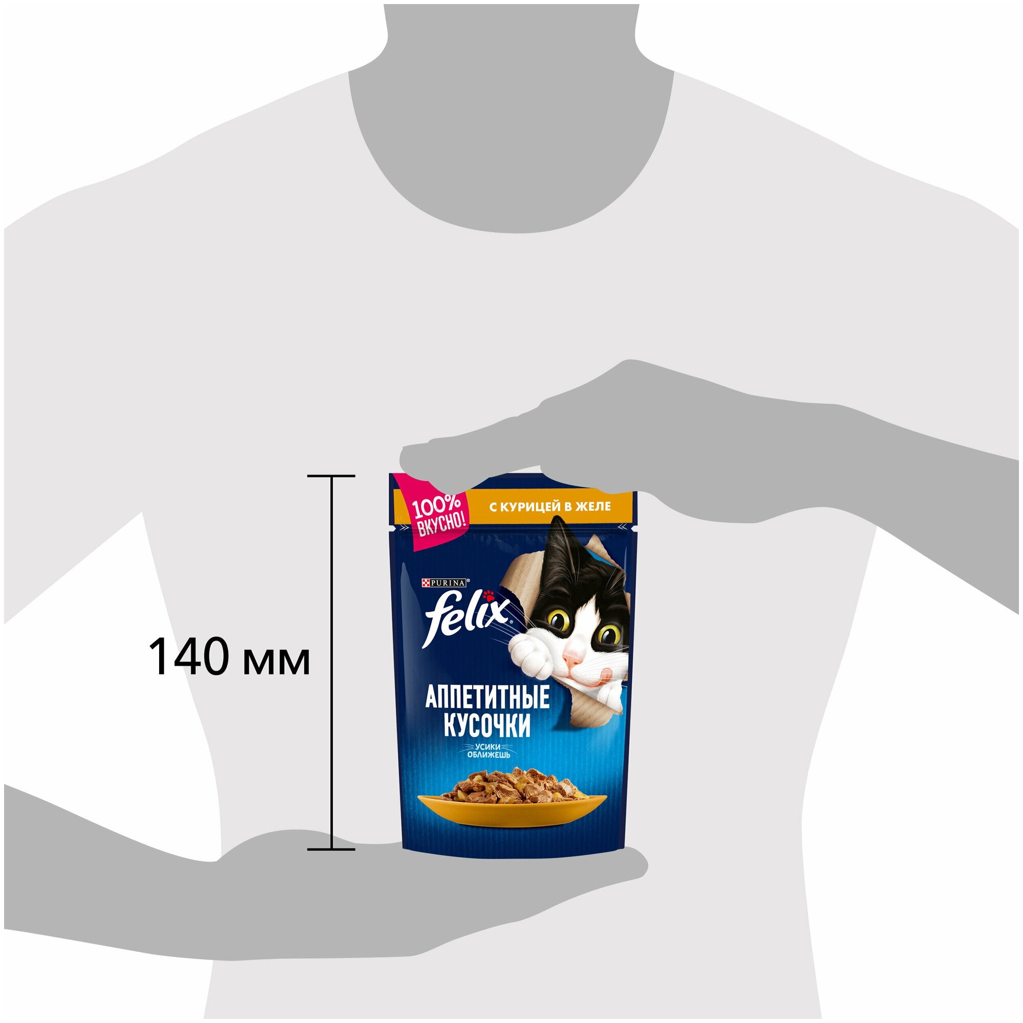 Влажный корм FELIX Аппетитные кусочки для взрослых кошек, с курицей в желе, Пауч, 85 г. 24 шт.