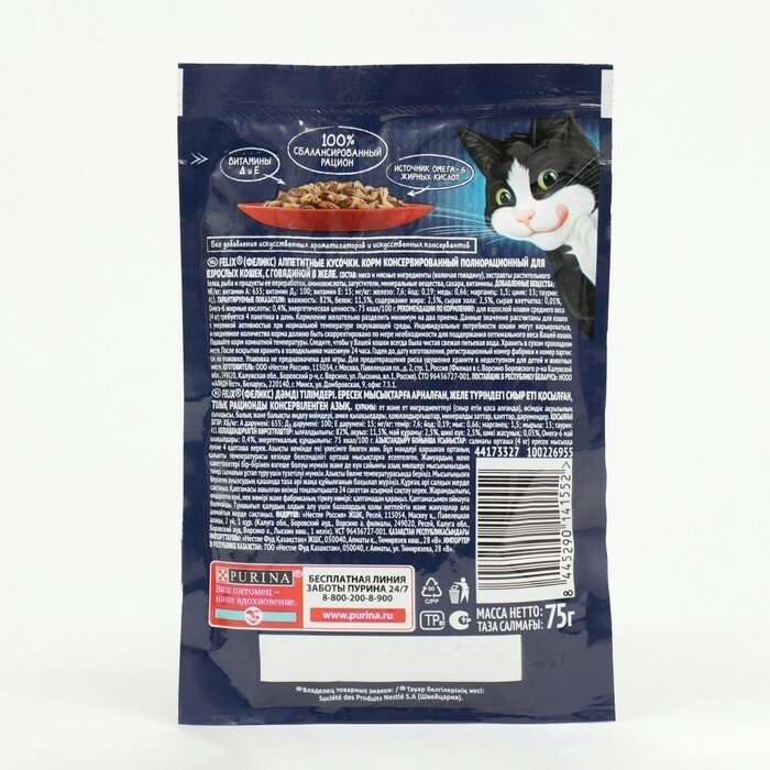 СохранитьВлажный корм Felix Аппетитные кусочки для взрослых кошек, с говядиной в желе 75 г х 26 шт интересное: