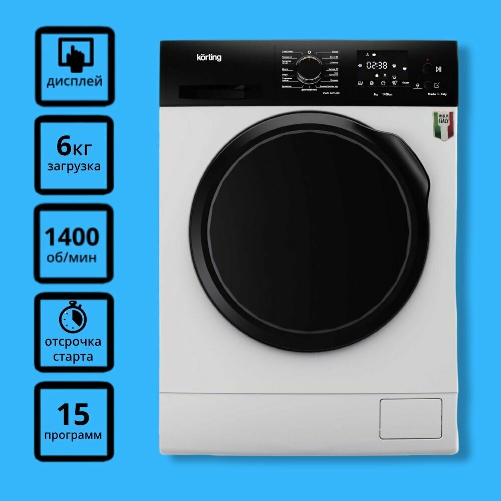 Стиральная машина Korting KWM 44D1460, загрузка до 6 кг, 15 программ стирки, 1400 об. мин, отложенный старт до 24 ч