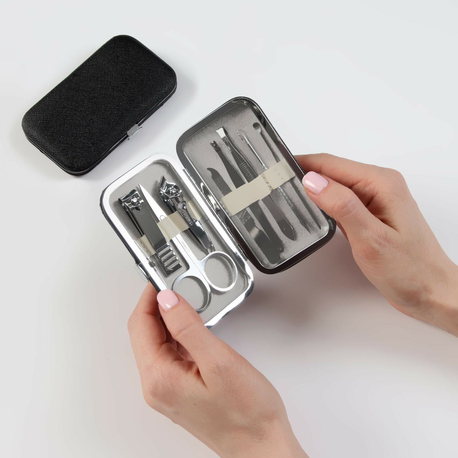 Набор маникюрный Фактура, 8 предметов, в футляре, цвет чёрный