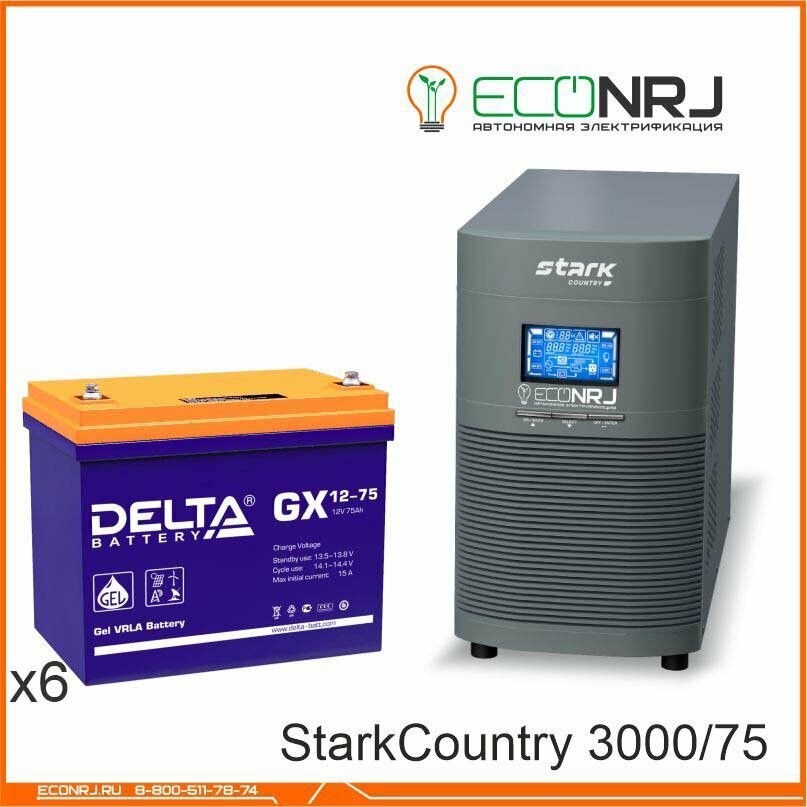 Инвертор (ИБП) Stark Country 3000 Online, 12А + АКБ Delta GX 12-75