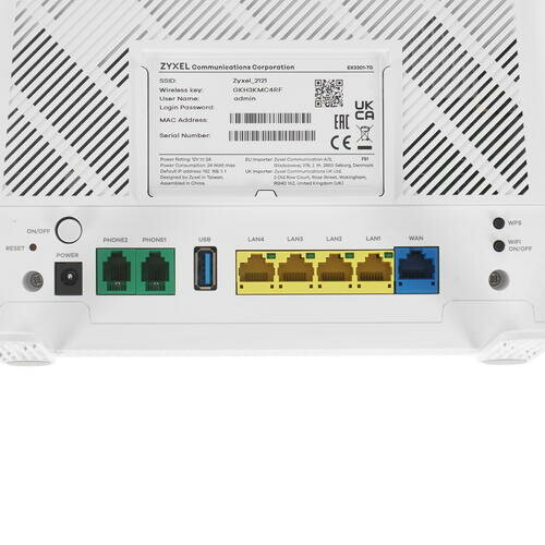 Маршрутизатор ZYXEL EX3301-T0 Gigabit Wi-Fi router, AX1800, Wi-Fi 6, MU-MIMO, EasyMesh, 802.11a/b/g/n/ac/ax (600+1200 Mbps), 1xWAN GE, 4xLAN GE, 2xFXS, 1xUSB2.0 (no PPTP/L2TP support)