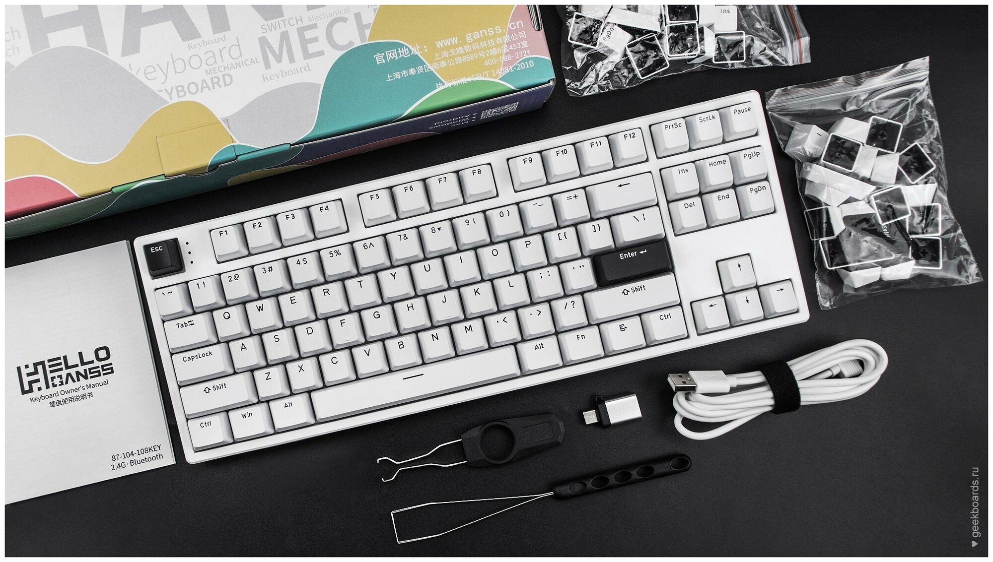 Беспроводная игровая механическая клавиатура HELLO GANSS HS87T White Feather переключатели Cherry MX RGB Blue, английская раскладка