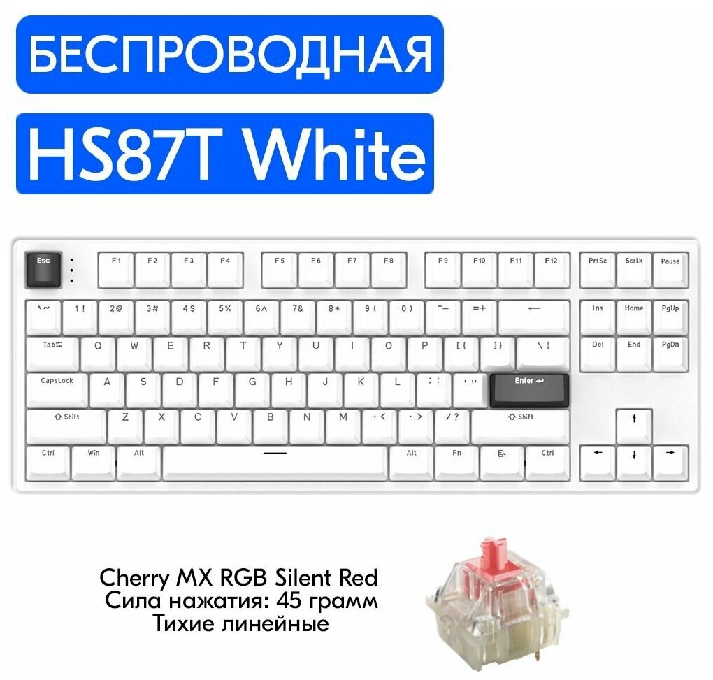 Купить Беспроводная игровая механическая клавиатура HELLO GANSS HS87T White переключатели Cherry MX RGB Silent Red, английская раскладка