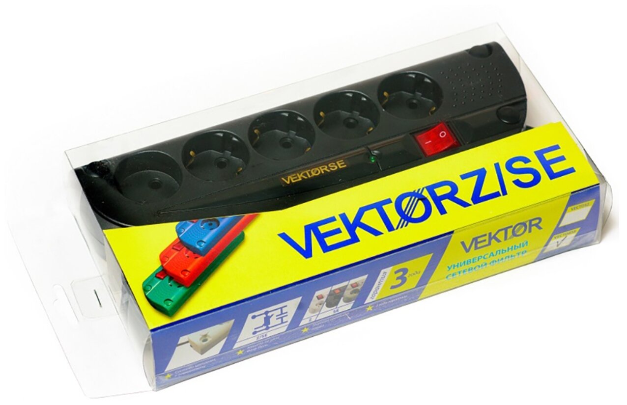 Сетевой фильтр VEKTOR Z, 5 розеток, с/з, 16А / 3500 Вт черный 3 м