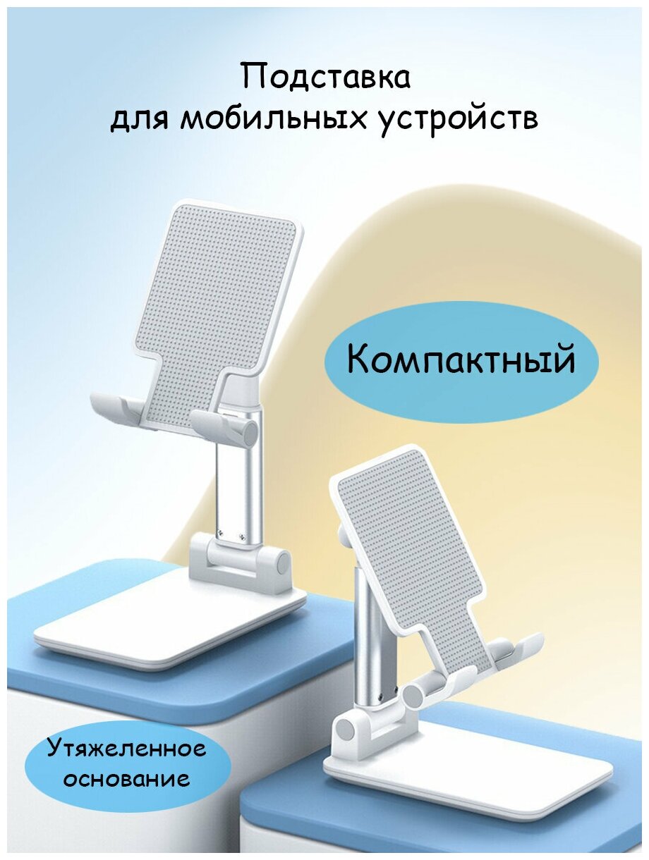 Подставка для телефона и планшета настольная / подставка регулируемая по высоте и наклону для смартфона (белая) интересное:
