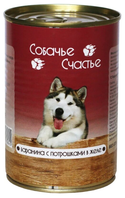 Консервированный корм для собак, Собачье Счастье, баранина с потрошками в желе, 410 г, 1 шт.