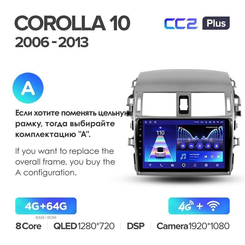 Штатная магнитола Teyes CC2 Plus Toyota Corolla 10 E140 E150 2006-2013 4+64G, Вариант B