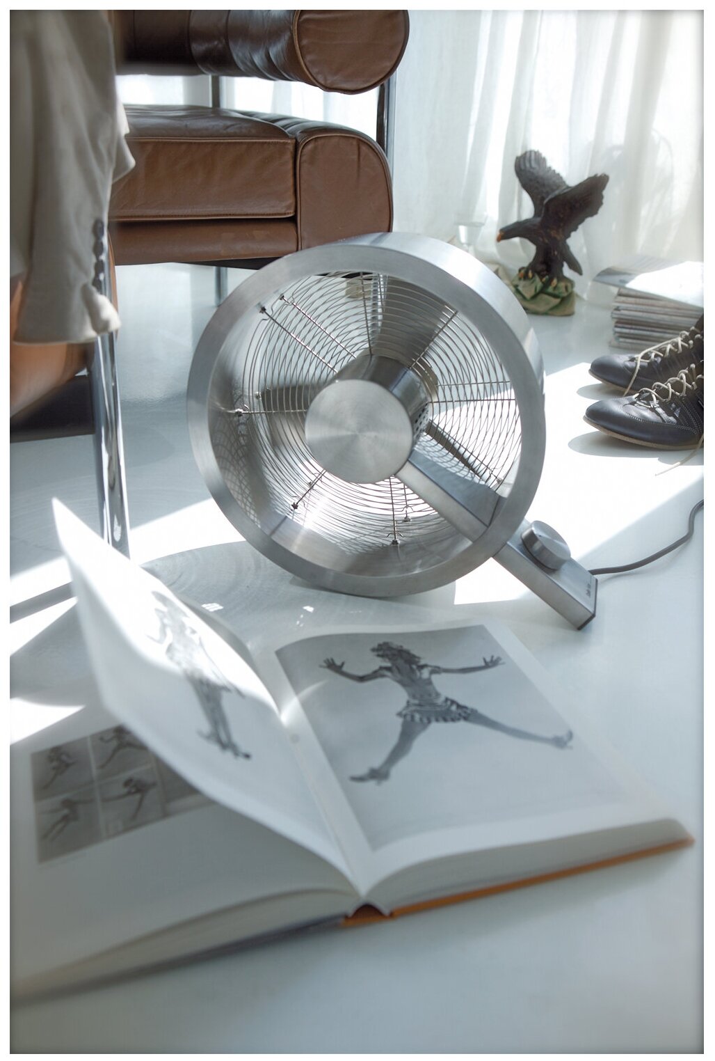 | Плюсы: | Отличный пример индустриального дизайна. На него приятно смотреть, приятно брать в руки. Визуально не перегружает помещение. На всех трёх скоростях работает стабильно, шум ощутим на третьей, но он не сопровождается посторонними механическими шумами. Воздушный поток на первой - мягкий, очень комфортный. Для комнаты в 20 метров третьей скорости не требуется. Пальцы при переноске не норовят попасть между прутьев на лопасти. |
