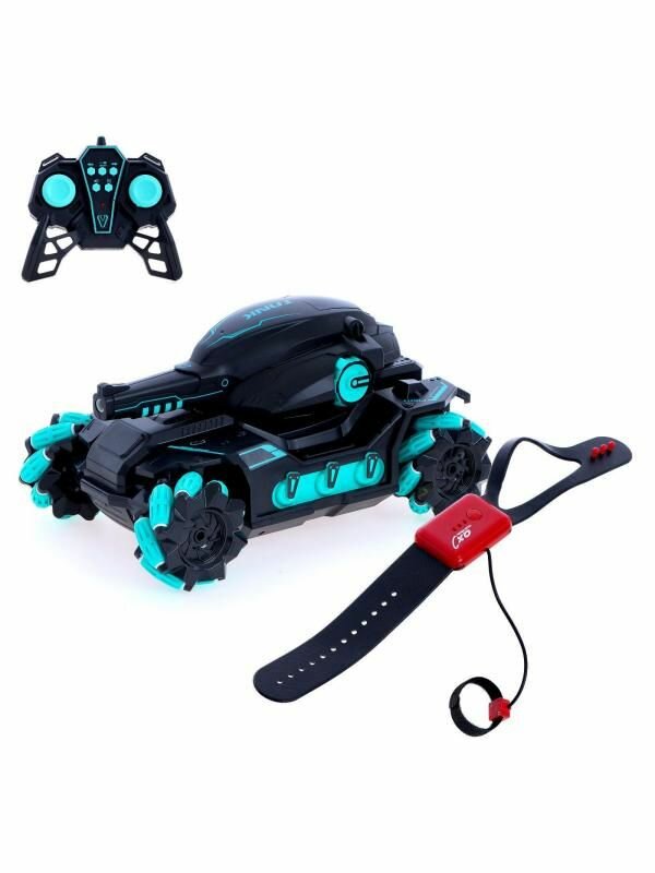 Танк на радиоуправлении Hengde HD3988 стреляющий гидрогелевыми шариками/Управление жестами/Вездеход на радиоуправлении/На пульте управления/голубой