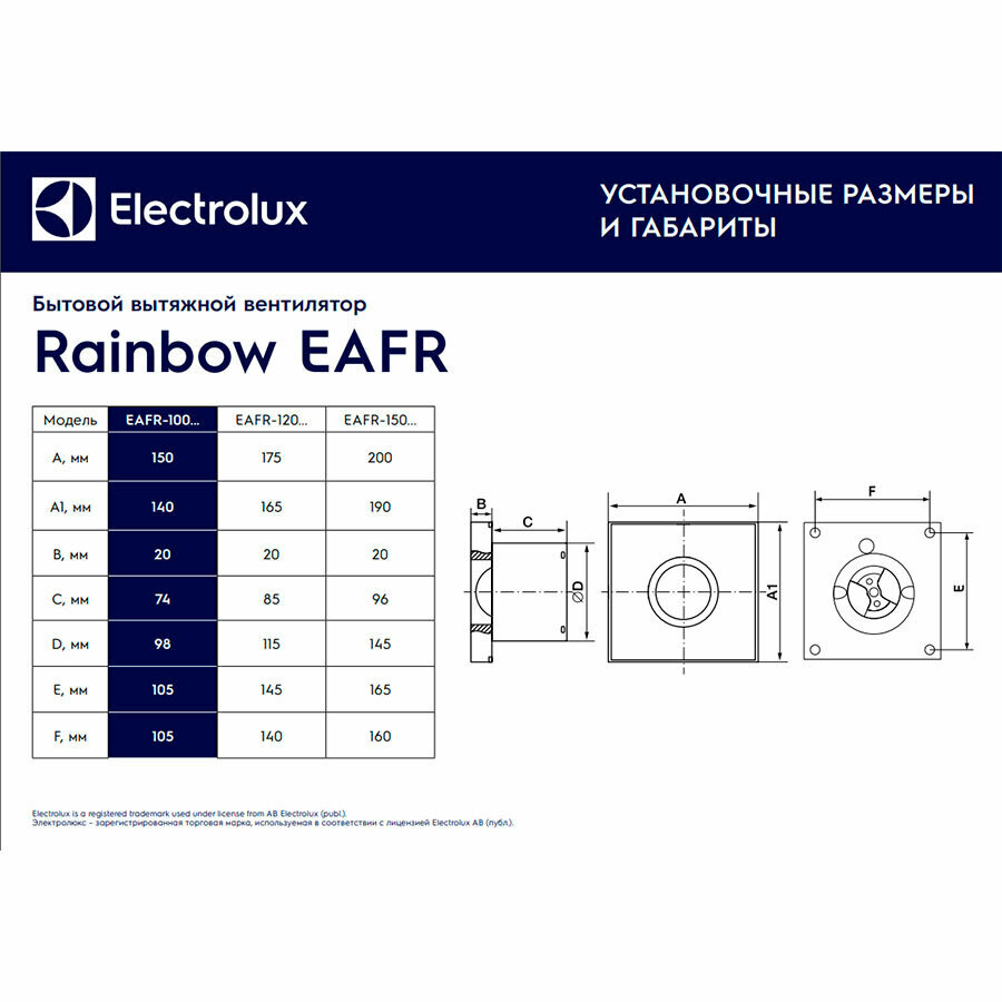 Вентилятор вытяжной Electrolux серии Rainbow EAFR-100