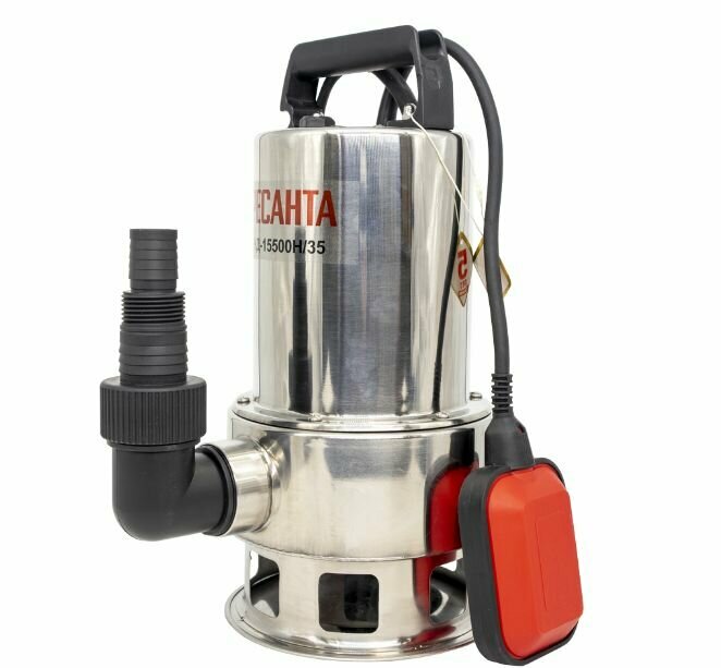 Насос дренажный погружной РЕСАНТА НД-15500П/35 для грязной воды (258 л/мин, с поплавковым выключателем) для откачки воды из водоемов, шахт, подвалов, помещений, бассейнов / для дома и дачи