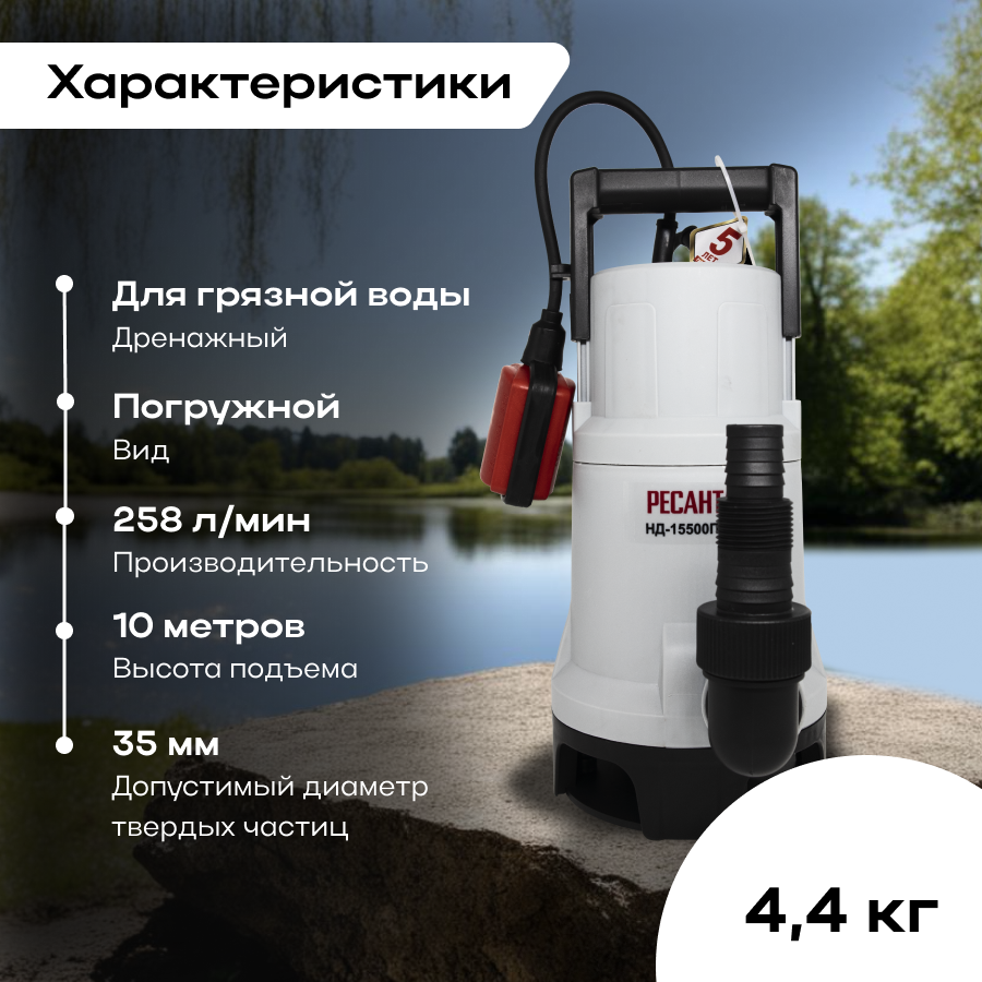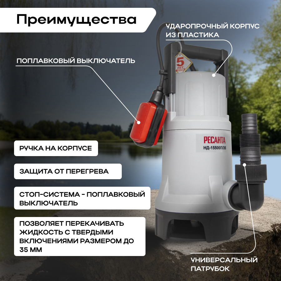 Дренажный насос НД-15500П/35 Ресанта интересное: