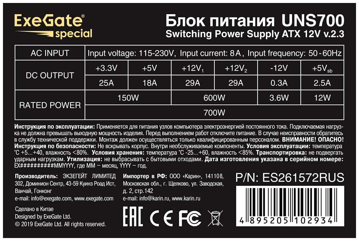 ExeGate UNS700 Блок питания - ES261572RUS