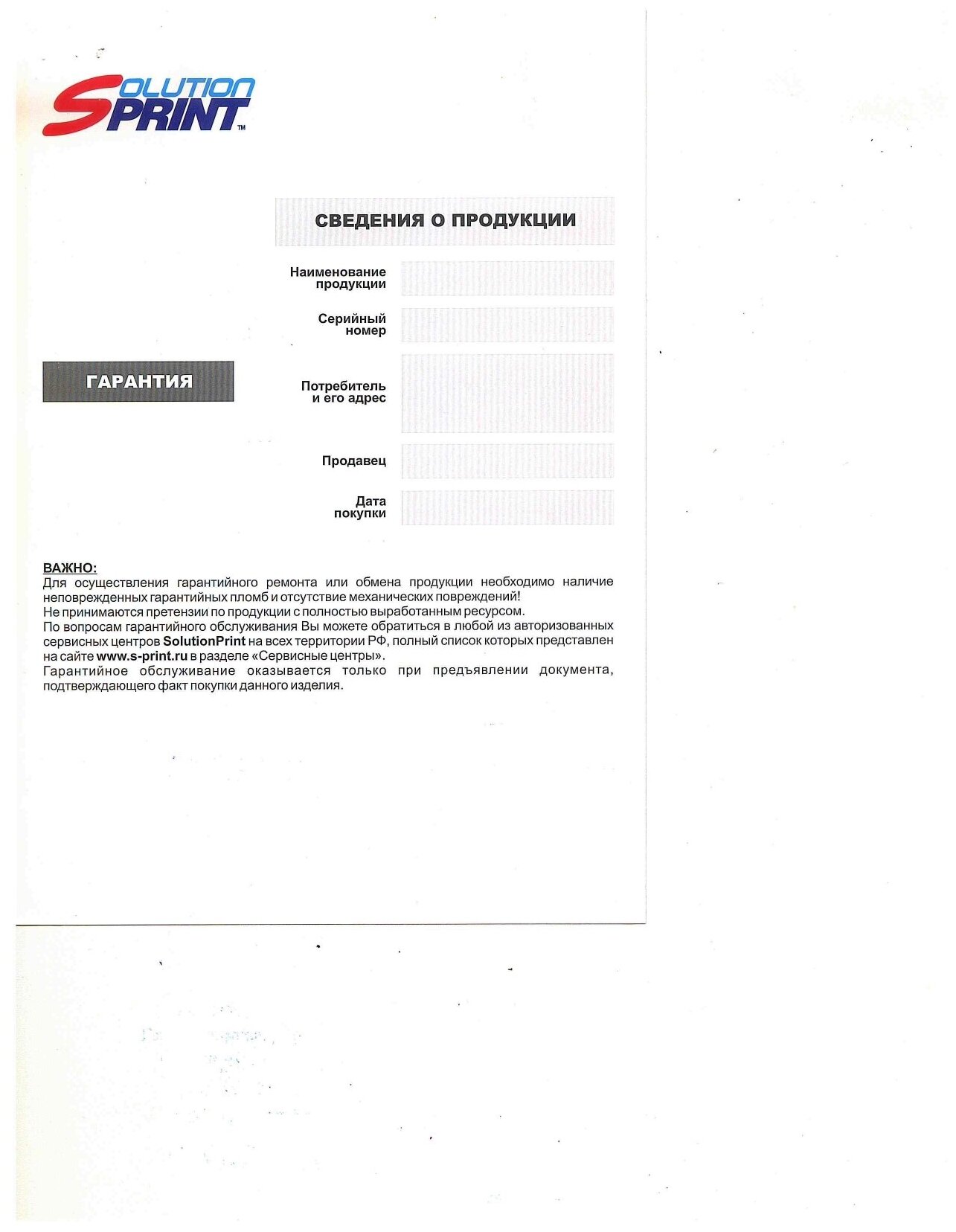 | Производитель | SOLUTION PRINT |