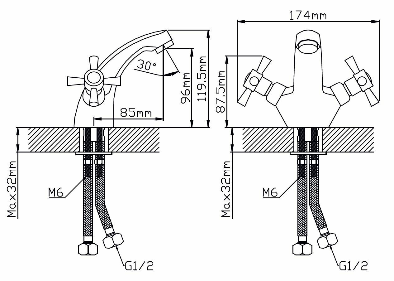 Смеситель д/умыв, 2-ручк, керам к/б, хром, желтые вставки, крепл шпилька, Potato (Китай), P1054-10