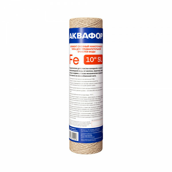 Картридж фильтра Аквафор для холодной воды Fe 63/250 намоточный от ржавчины 5 мкм 10SL | код 208824 | АКВАФОР ( 1шт. )