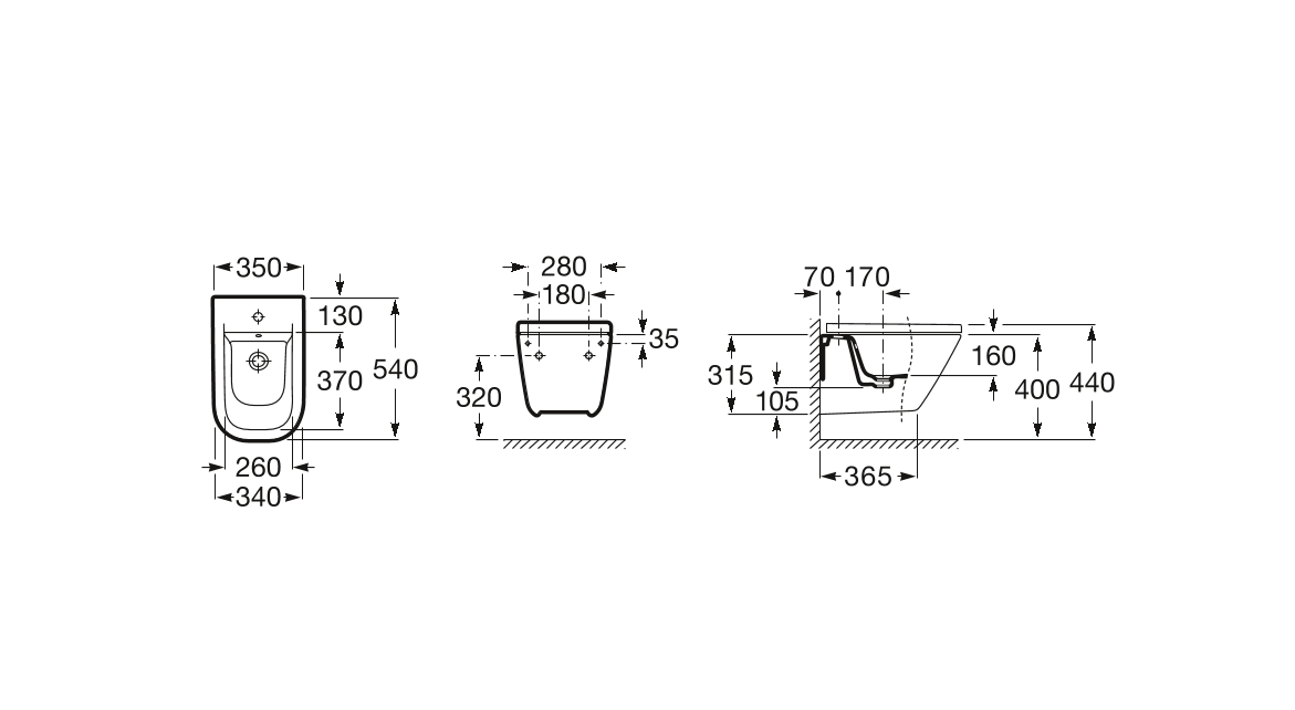 Gap 35х54см, биде, подвесное, без крышки, скрытые крепления, арт. 357476000, Roca