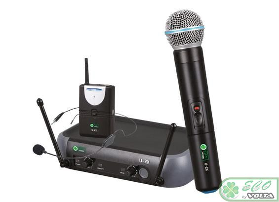 ECO by VOLTA U-2X (505.75/622.665) Микрофонная радиосистема начального уровня с одним ручным микрофоном и одним карманным передатчиком с головным микрофоном UHF диапазона с фиксированной частотой. True Diversity, Plugandplay., 1pcs in box: 423x337x70 mm,