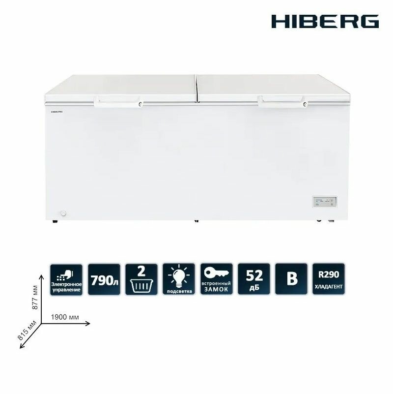 Морозильный ларь двухкамерный Hiberg PF 79L2W, класс энергоэффективности B, 790 л, 55 кг/сутки, ручная разморозка, суперзаморозка, белый