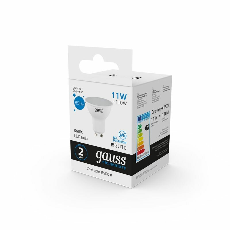 Лампа светодиодная Gauss GU10 11W 6500K матовая 13631 интересное: