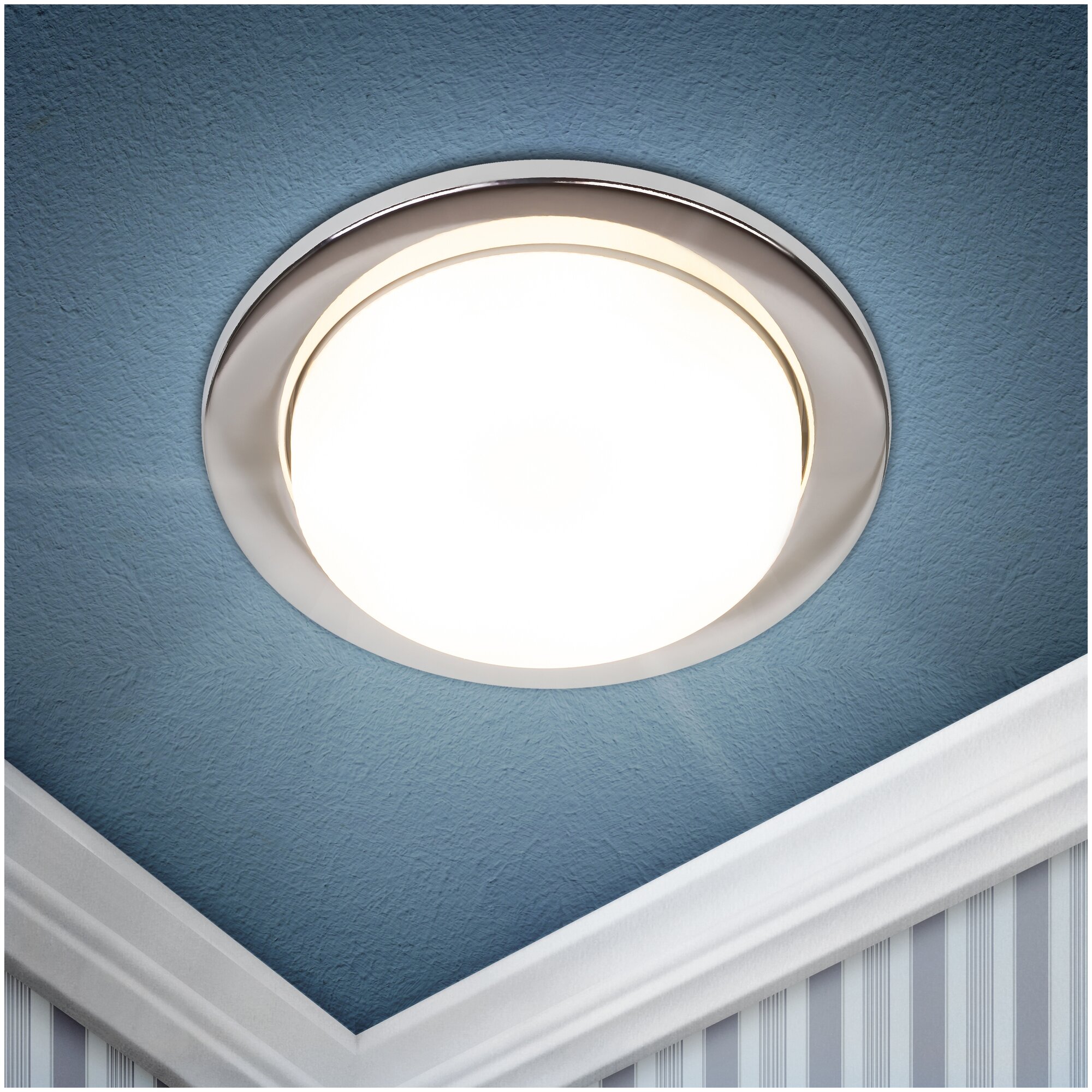 (2 шт.) Ультратонкий встраиваемый светильник ЭРА KL70 CH/1 для ламп с цоколем GX53 макс. 15 Вт, напряжение питания 220 В, размер 100x18 мм, врезное отверстие 90 мм, цвет хром, штампованная сталь