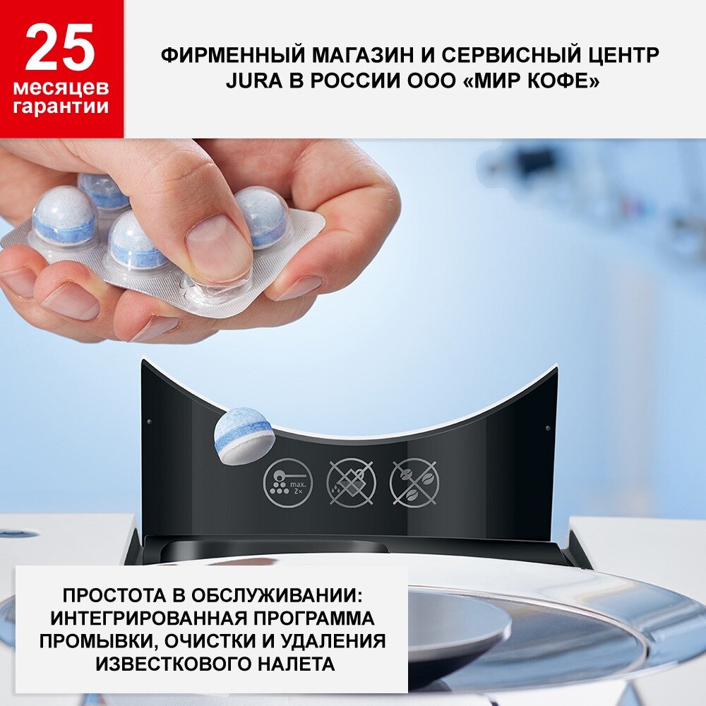 | Плюсы: | Jura e8 - это пожалуй лучшая кофемашина из Швейцарии! Работает как часы, в отличии от предыдущих поколений, кофемолка работает гораздо тише, что утром большой плюс. Из второго важного плюса , у кофемашины всего 5 носиков, 3 для подачи кофе и воды по центру и два справа для подачи молока и кофе, т.о. чашку, например, для приготовления американо, нужно поставить по центру кофемашины , а для капучино и латте - справа. Пену взбивает хорошо только из хорошего молока, я домик в деревне беру. Еще из плюсов - это куча патентов у производителя JURA, в связи с чем блок приготовления всегда чистый, без плесени, без дополнительной обработки. Еще один большой для меня , как для кофемана плюс - это приготовление американо, тут реализована правильная схема - сначала подается эспрессо, а затем оно разбавляется чистой водой из отдельного носика. Кофе проваривается качественно, все внутренние части можно мыть в посудомойке. |