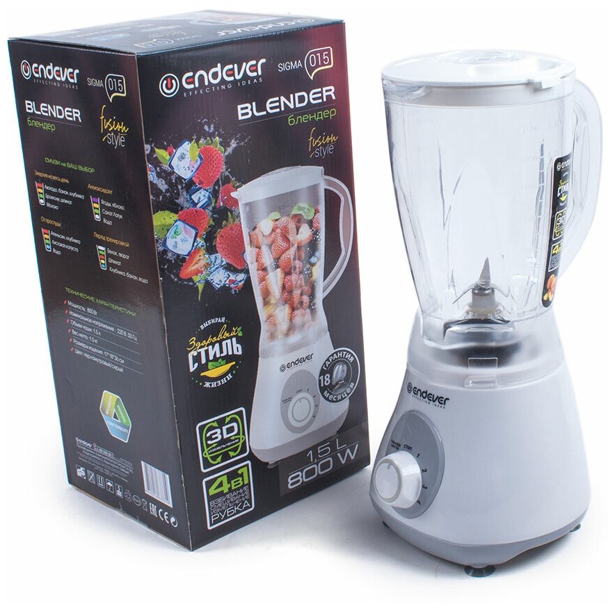 Блендер стационарный Endever Sigma-015 / 800 Вт / 1,5л / 4 скорости для взбивания, измельчения, смешивания, рубки / чаша из био-пластика