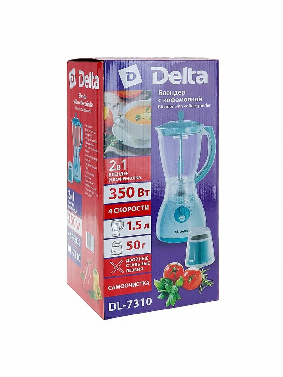 Блендер с кофемолкой DELTA DL-7310 серо-голубой : 350Вт, чаша 1,5л., кофемолка 50 г (6)