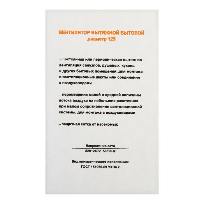 Вентилятор вытяжной "КосмоВент" В125, d=125 мм, 220 В, без выключателя интересное: