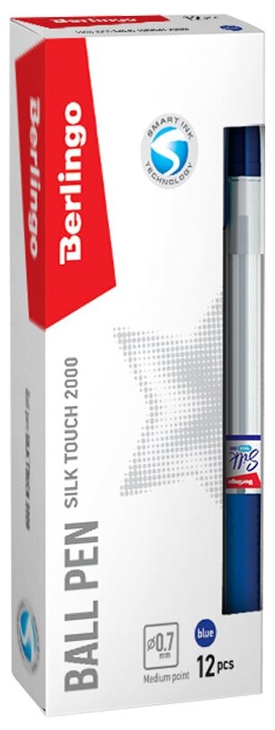 Ручка шариковая Berlingo "Silk Touch 2000" синяя, 0,7мм, игольчатый стержень, грип - 12 шт.