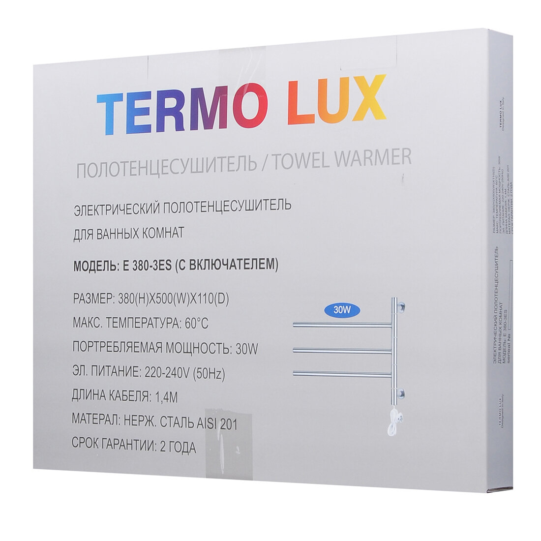 Поворотный электрический полотенцесушитель TERMO LUX E380-3ES