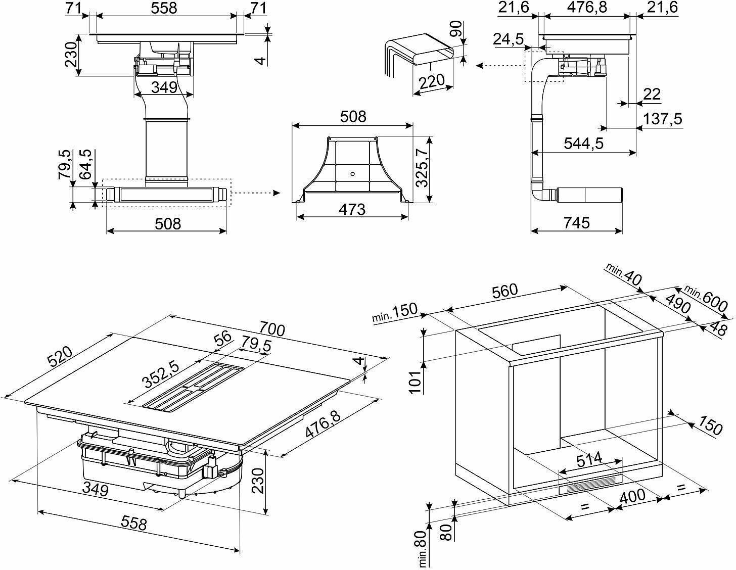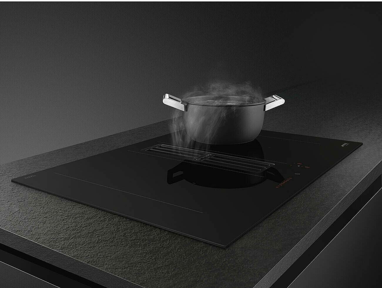 Индукционная варочная панель со встроенной вытяжкой Smeg HOBD472D интересное: