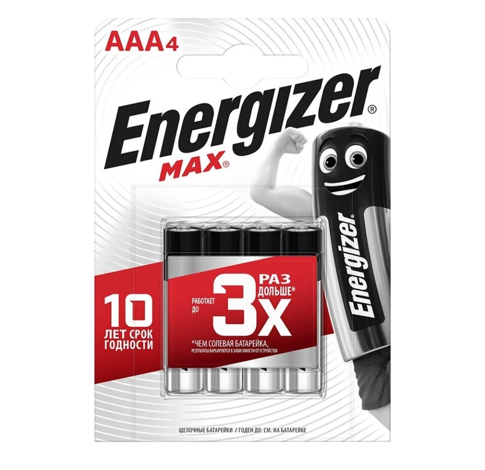 Батарейки щелочные Energizer LR03 MAX BL-4, тип AAA, 1.5В, 4 шт в 1 уп