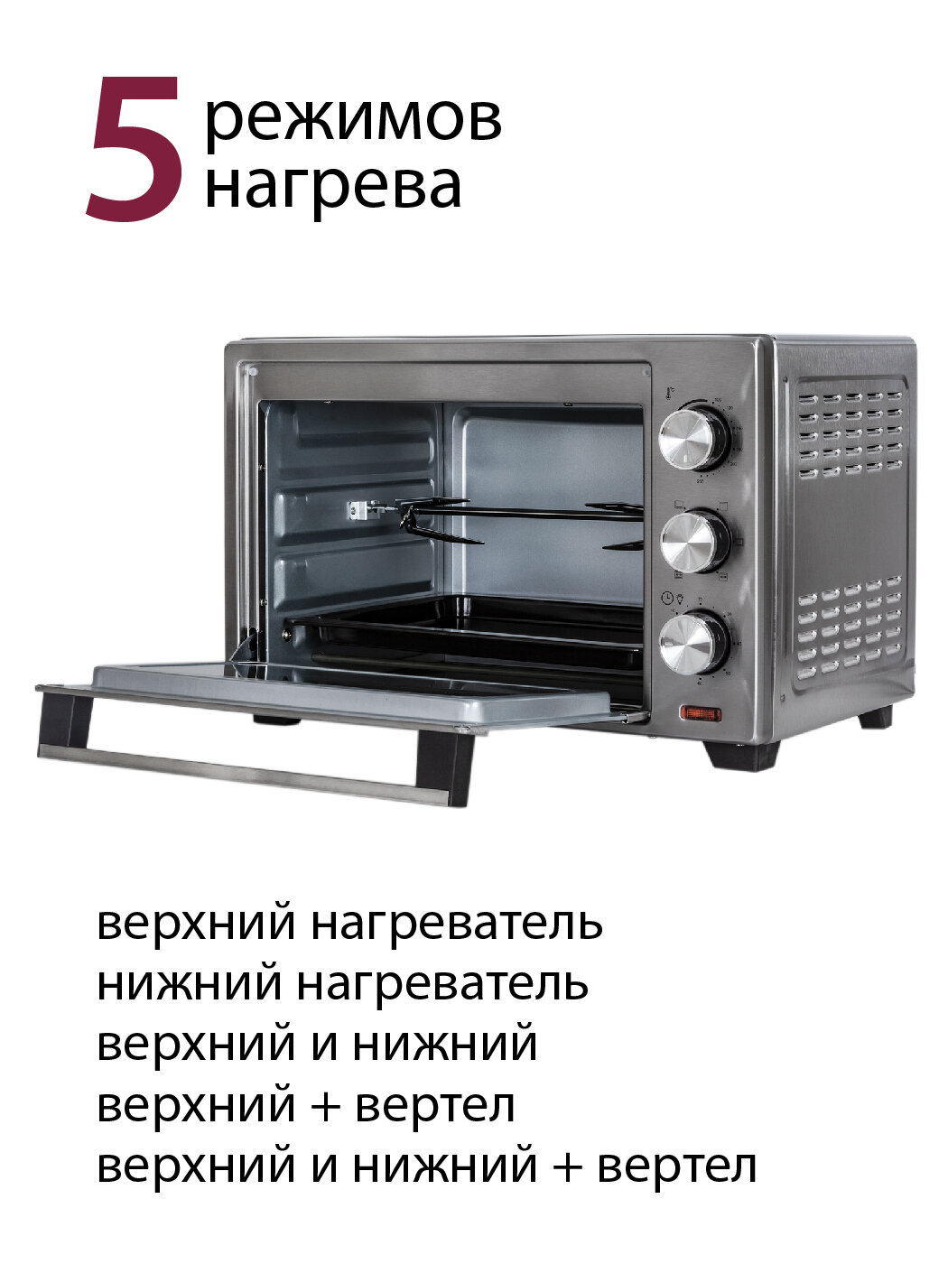 | Режимы | верхний гриль / верхний нагрев / верхний+нижний нагрев / нижний нагрев |