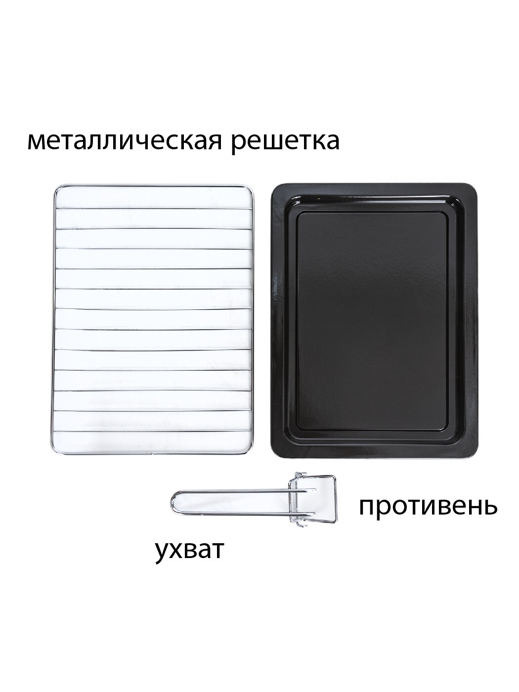 | Комплектация | вертел / держатель для противня/решётки / противень / решётка / ухват |