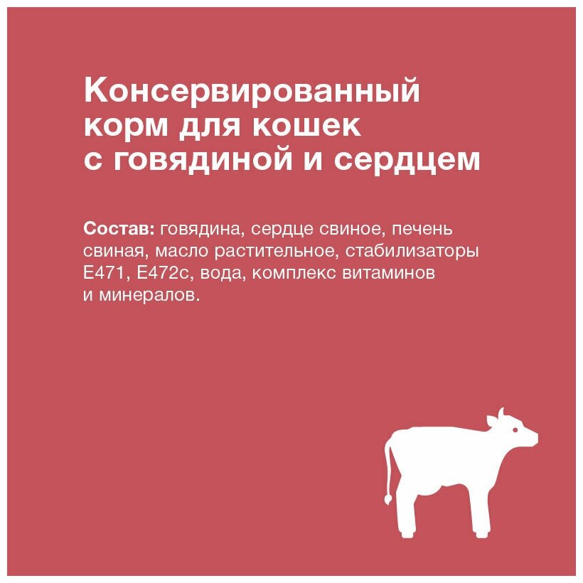 Консервы для кошек говядина с сердцем 0,1 кг х 16 шт.