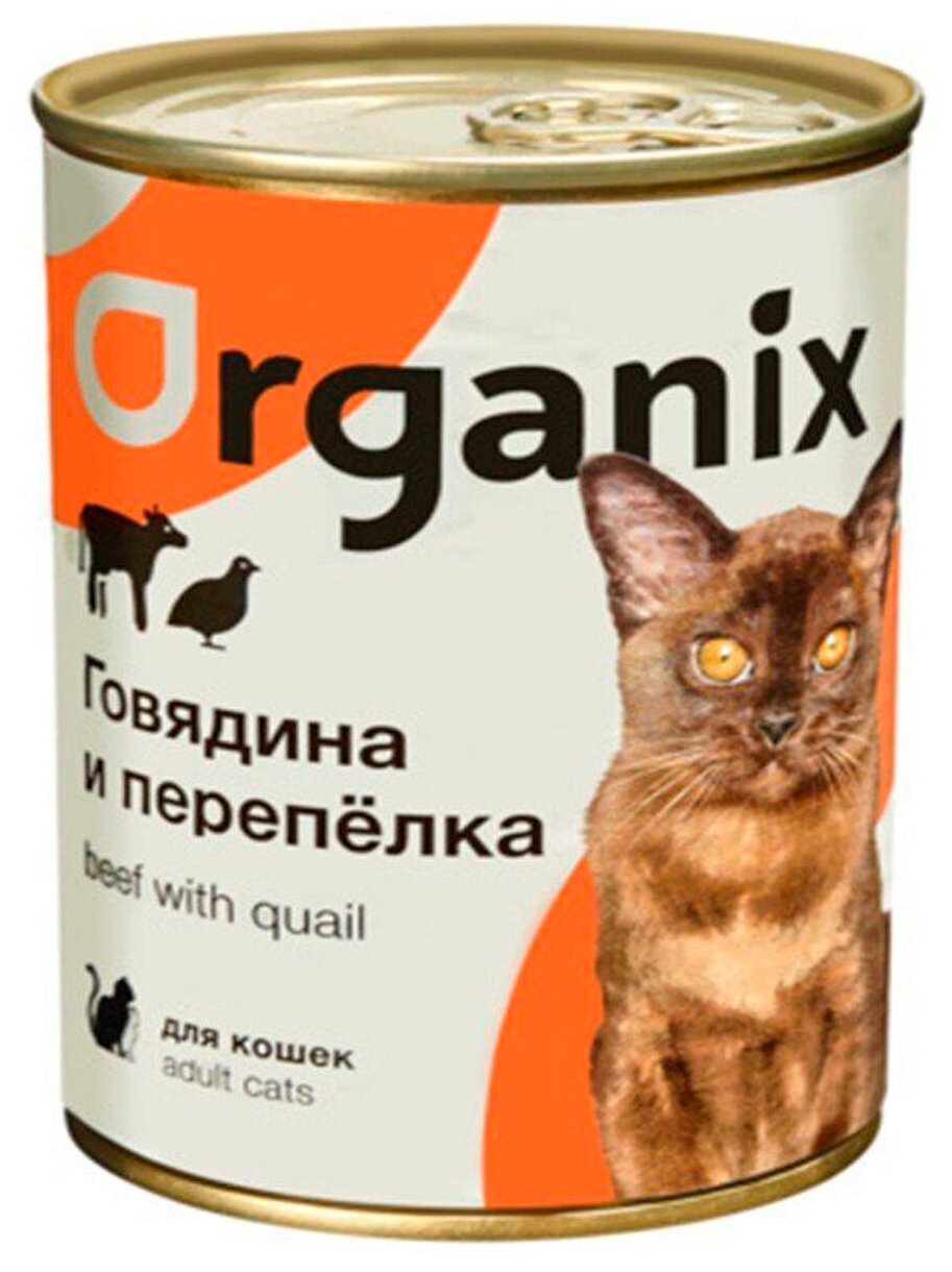 Влажный корм для кошек ORGANIX с говядиной, с перепелкой 410 г (паштет)