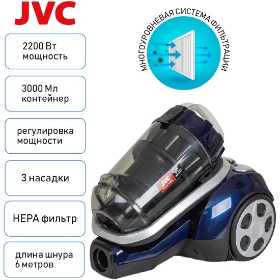 Пылесос JVC, JH-VC410, 2200 Вт, с контейнером, 3 л, сухой, циклон, синий