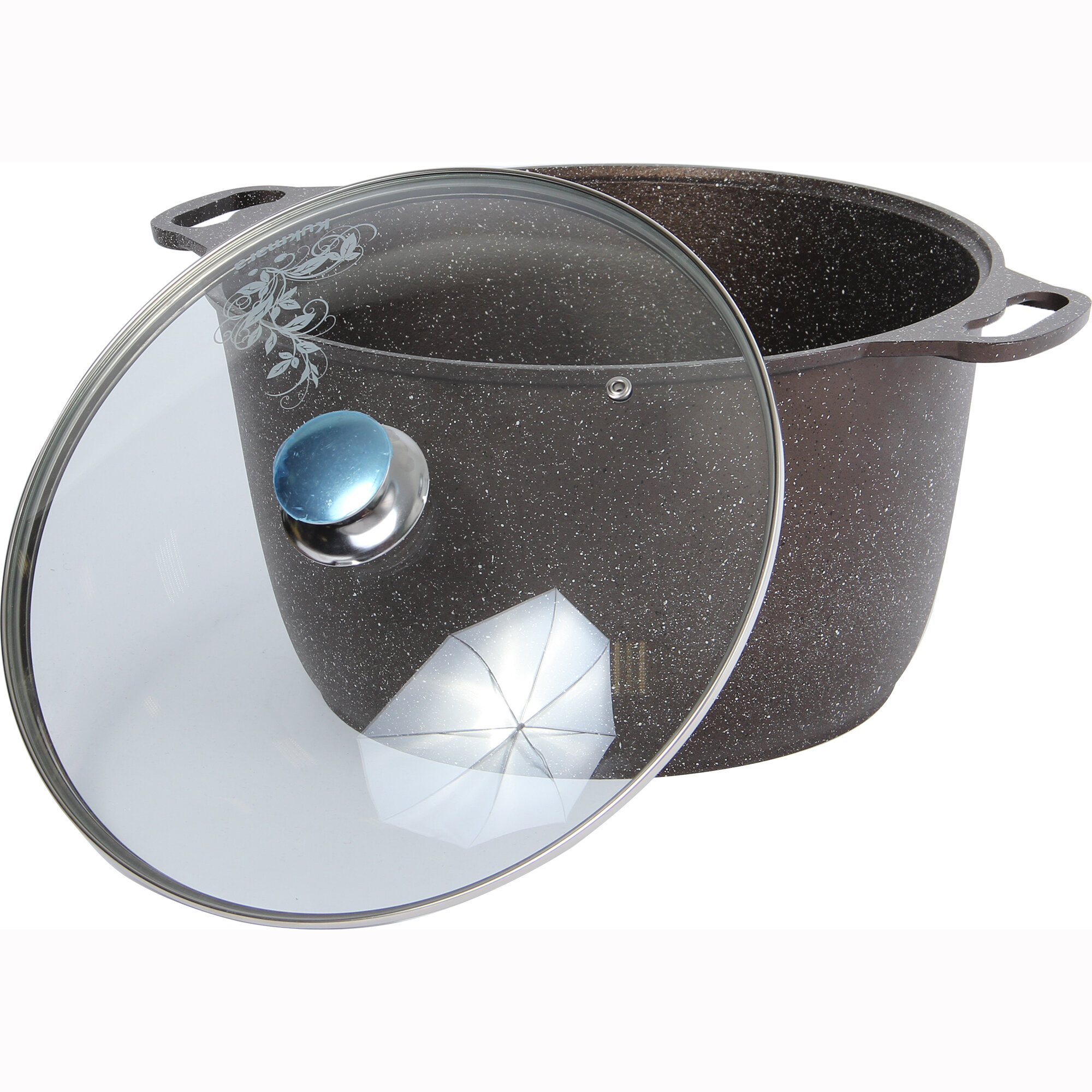 "Кастрюля с антипригарным покрытием со стеклянной крышкой Kukmara (Кофейный мрамор) кмк82а-1а, 8 л"