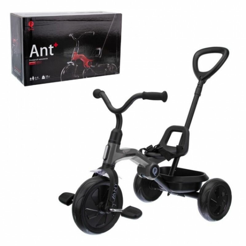 Трехколесный велосипед QPlay Ant Plus Basic Trike(неуправляемая поддерживающая ручка-толкатель), серый